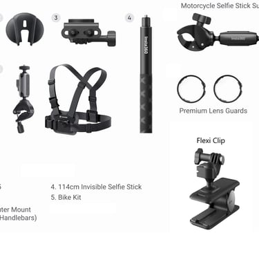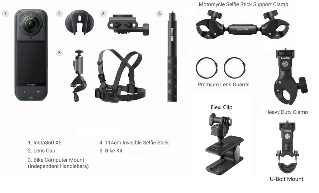 The Insta 360 X5 is supported by a suite of thoughtfully engineered accessories that unlock its full potential. For motorcyclists, the U-bolt Mount provides a rock-solid connection to handlebars on motorcycles for stable onboard shots, while the Rear View Mirror Mount is perfect for capturing epic third-person perspectives on scooters. The Invisible Selfie Stick is a must-have for those signature floating shots. Combined with the camera's magnetic mount for quick setup and a heavy-duty clamp for versatile placements, this ecosystem ensures you're always equipped to get the perfect shot, no matter the situation.